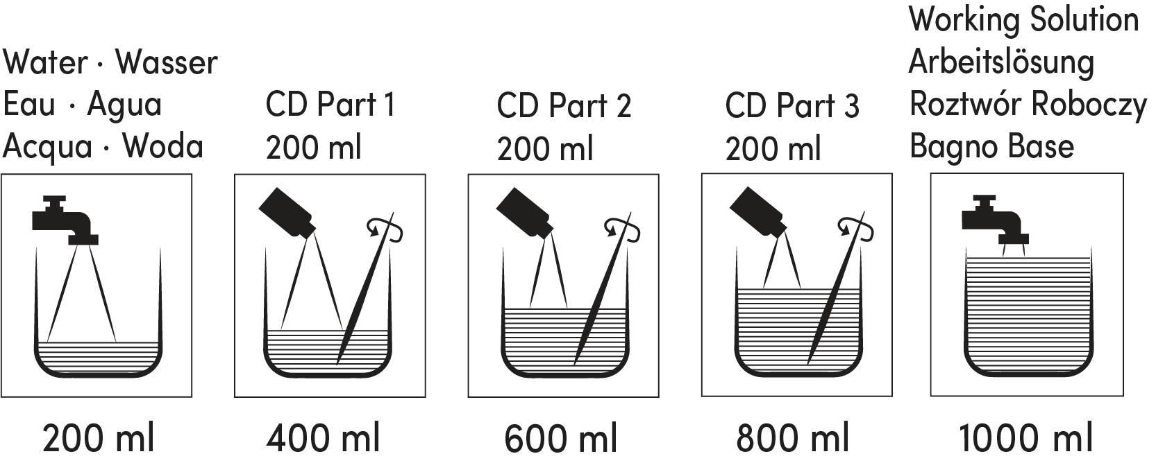 C-41 protsessi värvifilmi ilmutamise komplekt. Jätkub kuni 16 filmi ilmutamiseks.